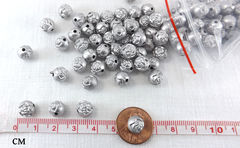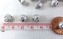 Pretty carved beads with roses on each side. 8mm acrylic (plastic) bead with 1.5 drill hole. 100 beads of silver color.